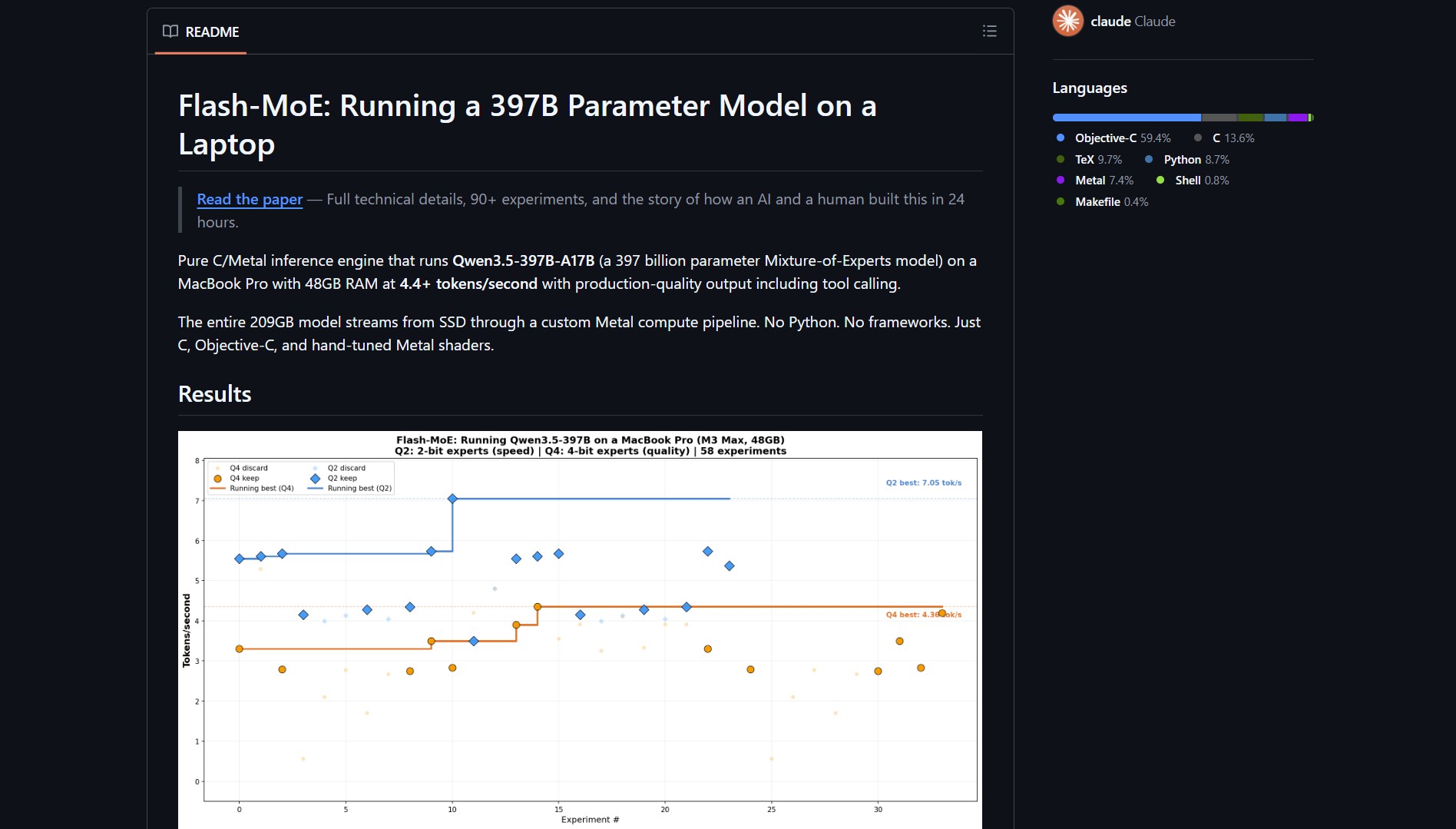Flash-moe demonstrates that massive models can run locally by rethinking hardware constraints. It opens new possibilities for on-device AI without data-center-scale infrastructure.